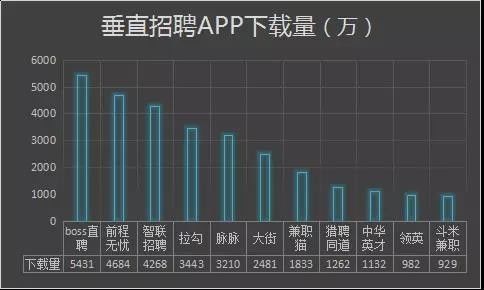 与此同时,新兴招聘平台同样不容小觑,根据速途研究院发布的《2016年在线招聘市场分析报告》显示,在垂直招聘APP应用中,Boss直聘以5431万的下载量占据首位,前程无忧和智联招聘分别排名第二和第三。