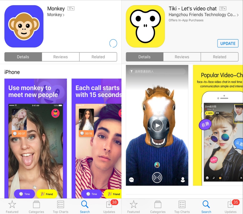 也有做陌生人视频社交的Monkey。在这个软件中系统会随机匹配一名用户给你,接受之后你们有一分钟的聊天时间,如果觉得气氛不错,还可以续时一分钟。它是由两个不到20岁的年轻人创立,最近半年在美国App Store上拿到了90%超过四星半的用户评价。