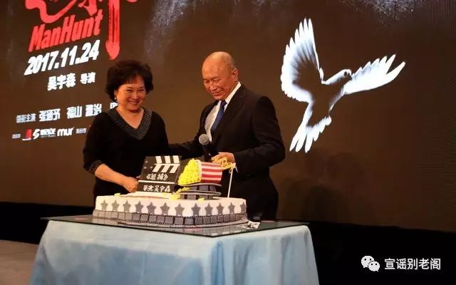 吴宇森导演与太太在《追捕》剧组为他举办的生日会上开心地切蛋糕,这是夫妻俩难得的相聚时光