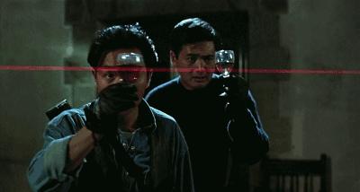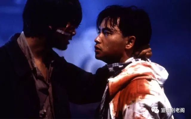 如果说《喋血双雄》是吴宇森谱写的“浪漫命运交响曲”,那《辣手神探》(1992)就是一曲“悲情主义咏叹调”——这次与发哥演对手戏的是当时的影坛新人梁朝伟,发哥从《喋血双雄》的杀手身份变成《辣手神探》的痞气警察,而伟仔则是帮派中的卧底警察,发哥在明、伟仔在暗,两人的对手戏尤为精彩(说《无间道》剧本灵感来自《辣手神探》,阁主绝对相信~),伟仔举枪的姿势并不输于《喋血双雄》中的李修贤。