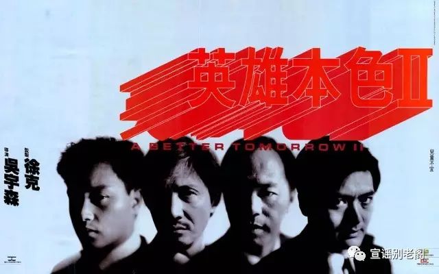 《英雄本色2》海报,左二为吴宇森早期御用老演员石天