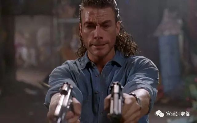 陀双枪是吴宇森电影的招牌动作,尚格·云顿也没能落下~