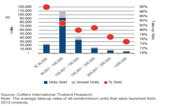 在过去1-2年,开发商对低端市场或者是售价低于130万泰铢的公寓项目关注较少,这与银行按揭贷款有关,因为大多数买家无法从银行获得贷款。这部分买家除了房贷还有其他债务,总体家庭债务比银行预期的要高。