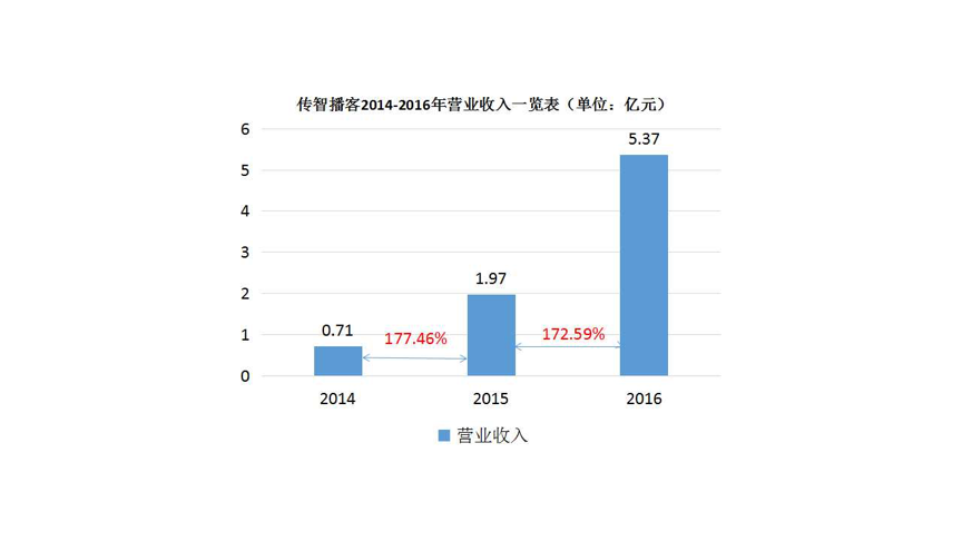 首先,我们来看一下传智播客2014-2016年营业收入的变化。