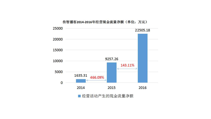我们结合2016年上半年、全年的现金流量净额,以及2017年上半年达到8659.73万元的现金流量净额,假设2017年下半年传智播客的现金流较2016年没有增长,仍旧为15762.54万元,那么2017年其全年的经营现金流量净额可达到24422.27万元,仍旧比2016年增长8.52%。