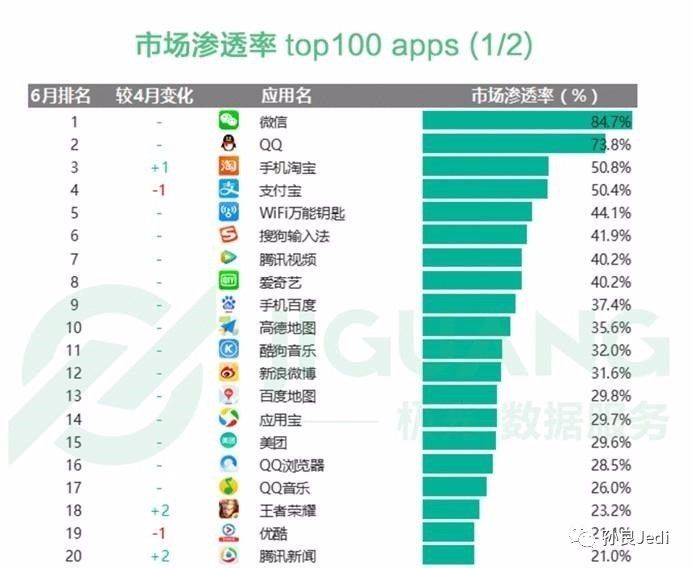 极光大数据的统计显示,从2017年6月中国App的渗透率来看,Top10名单中BAT直接占据了八席(间接占九席);Top20名单中,只有两个与BAT无关;如果把范围扩大到Top50,则BAT直接和间接控制了近80%的应用。少数巨头的垄断,使得国内互联网创业的竞争达到白热化,后来者很难在BAT的笼罩下突围。