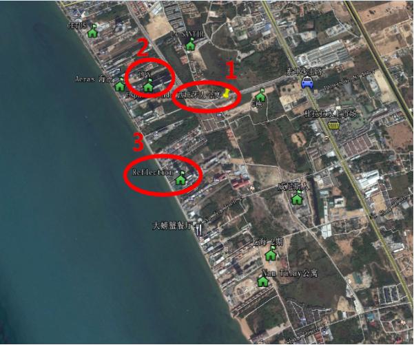 蓝色--一线海景公寓 红色--部分海景公寓 绿色--普通公寓