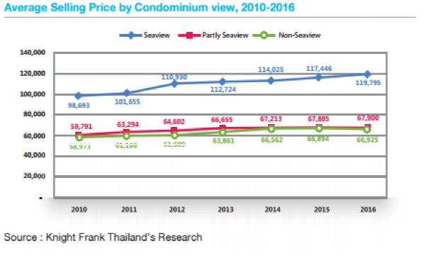 从上图可见,一线海景公寓的价格最高,上涨幅度也是最大的,均价约120000万泰铢/平(约人民币2.4万/平),和国内二线城市的房价基本持平;但是景观资源差一些的普通公寓均价1.2-1.5万元/平,价格仍处于洼地,上涨潜力将随着城市的发展表现更为强劲。
