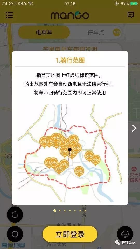 通过体验多个共享电动车的APP后懂懂笔记发现,7号电单车的主要市场集中在北四环及其以北的区域,也有车辆被用户骑到其他地区的个例,车辆的数量较多;而芒果电单车则是在全市范围内运营,同一区域内可用车辆数量较少。