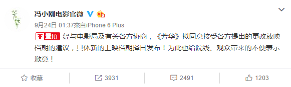 冯小刚在上海路演结束后,发布了一条微博,向观众和媒体道歉,同时也驳斥了“炒作”的说法。像上文所言,《芳华》已经拿到了“公映许可证”,但仍然“被”撤档,就并不是广电总局的原因,因为影片涉及的故事和敏感题材牵扯到各个部门审查,所以临时撤档就并非炒作。