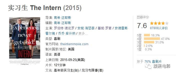 本片的亮点除了安妮海瑟薇之外,对观众有着致命吸引力的应该就是奥斯卡影帝罗伯特·德尼罗。