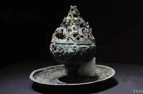 据《两京杂记》记载:长安巧工丁缓善做博山炉,能够重叠雕刻奇禽怪兽以做香炉的表面装饰,博山炉工艺之繁,远远超过后来出现的五足或三足香炉。
