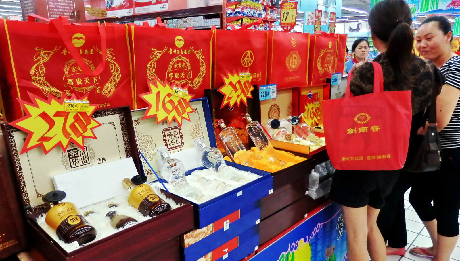 它们的市场还要受到知名集团酒的挤压,以茅台、五粮液为例,它们除了拥有坚决不降价的主力品种如飞天茅台和普五,还推出了定价大众的非主力品牌酒。界面记者在深圳商超发现,消费者可以买到不少活动价在百元以下的五粮液或茅台集团出品的白酒,店员称这些价格便宜又是知名集团生产的酒是最卖得最好的种类,因此商超方面也往往把这些知名集团生产的大众白酒作为主力产品推销。