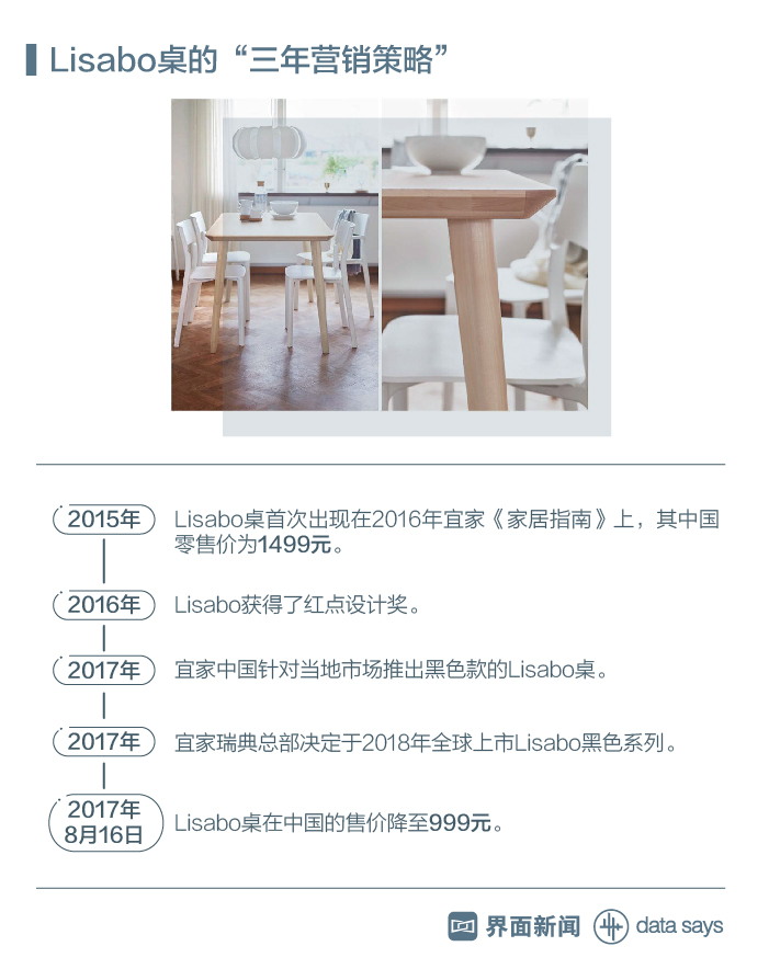 上市半年后,市场上开始出现大量的山寨产品。当Lisabo不再特别的时候要怎么办?孟瑞的做法是回应消费者的意见,在白蜡木色之外开发出黑色新款于2017年推出。与此同时,她将这个意见反馈给了瑞典总部,经过系统分析考量,瑞典总部决定于2018年全球上市Lisabo黑色系列。两年下来,Lisabo桌子的市场反映上佳,孟瑞已经可以很有底气地预测它将持续保持高销售量,并因此获得了与供应商更高的议价空间。于是从今年8月16日开始,Lisabo桌子的价格降至999元。