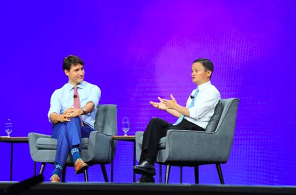 在马云和特鲁多的对谈环节上,马云在谈到如何帮助中国人到加拿大旅行时,现场的气氛达到高潮。马云说:“我们鼓励中国人走出去。我们有阿里旅行(飞猪),现在有5亿人使用阿里的服务,同时也很希望加拿大政府简化中国游客签证程序。”全场响起了掌声。