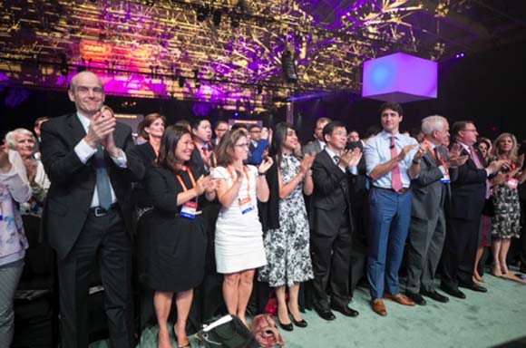 马云的提议得到热烈反馈,特鲁多总理带头为马云给国人争取权益和便利的举动起立鼓掌,现场掌声、口哨声响成一片。马云希望更便捷的签证程序能够让更多的年轻人走向世界,改变对世界的看法,获得更多机会。