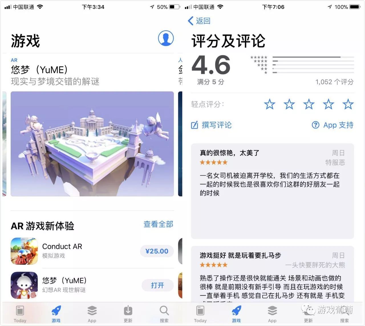 而近日,网易在全球首发的另一款AR解谜游戏《悠梦》(YuME)又获得了152个国家及地区App Store的推荐(据App Annie数据)——在国内,它还获得了Banner推荐和4.6分(满分5分)的玩家评分。