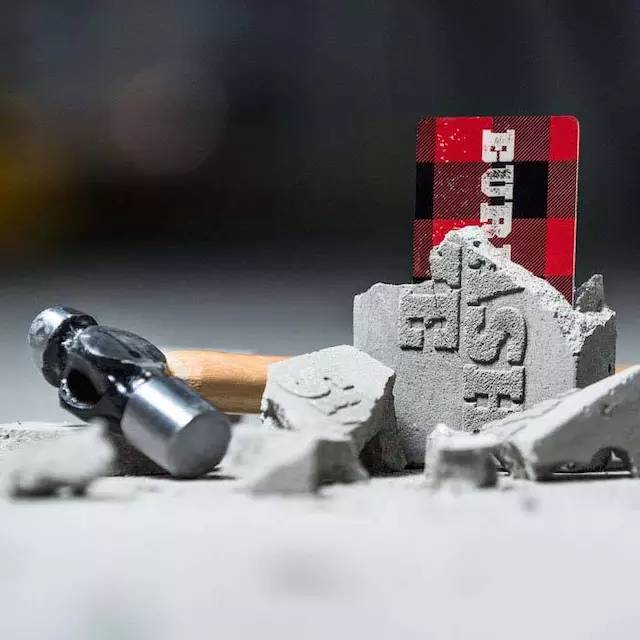 这家网站的礼品卡也独具特色,礼品卡藏在混凝土里,需要用斧头砸碎才能拿出来。