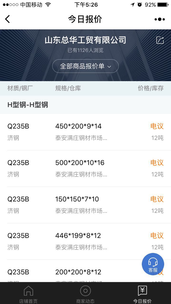 现在打开微信小程序,根据账号可以找到每一家入驻的五阿哥钢贸商,就像企业微店一样。