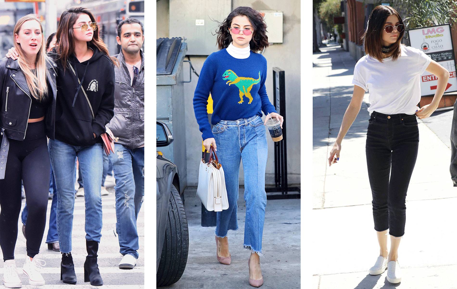 我觉得她的街拍造型很有借鉴意义,Selena和普通人的身材差不多,而且她的衣服基本上都不太费力,平常穿出门也不会让人觉得自己在加戏。