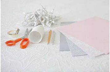 首先准备好剪刀、纸杯、彩纸以及小灯泡串等材料。
