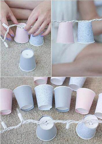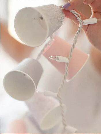 接下来就是简单的把带有小灯泡的绳子穿入每个纸杯。
