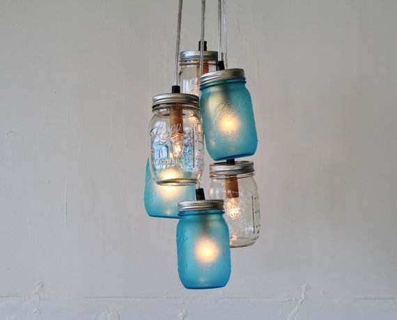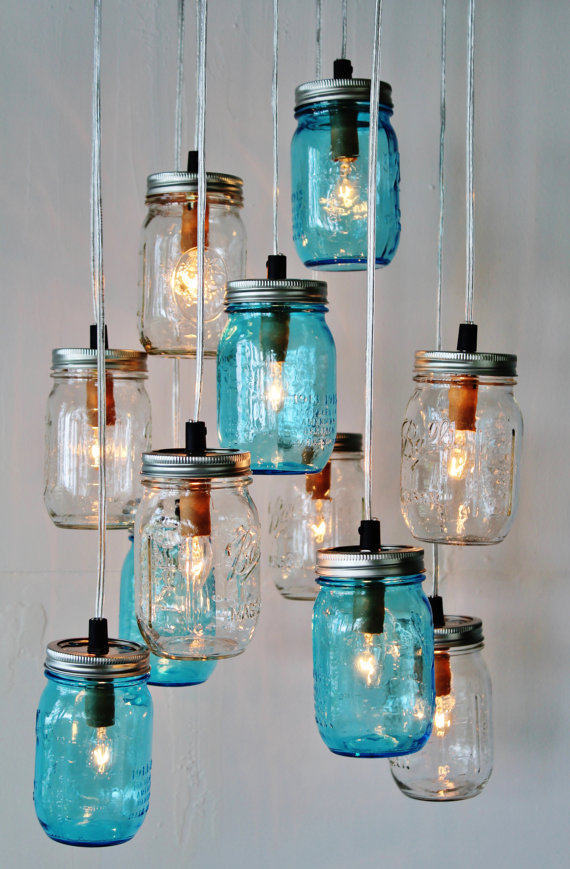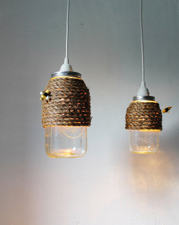 比如这些废弃的玻璃瓶,做成吊灯的灯罩,是不是感觉也不错呢?