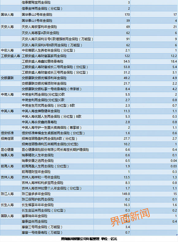 界面新闻简单估算发现,这些近百款停售产品去年为保险公司卖出了近5300亿元保费收入,占人身险公司去年总保费收入的17%左右。这些产品许多都是保险公司今年开门红的主打产品,随着134号文的实施,保险公司2018年开门红产品的表现充满变数。