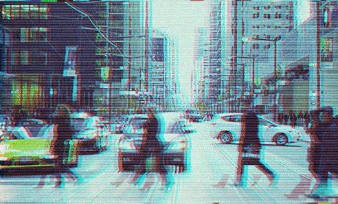 比如电视、电脑等一些电子设备出故障,在视觉上表现的破碎、有缺陷的图像,颜色也会失真,就像我们小时候电视花屏时抓狂的感觉。