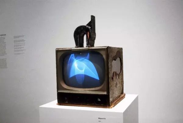 来自“影像艺术之父”白南准1965年创作的《磁贴电视》-Magnet TV。它的原理其实超简单,在电视机上放置一块强力磁铁来影响机器内部运作,让图像和声音都发生变化。