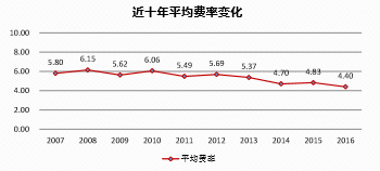 值得注意的是,自2010以来,地铁项目工程保险平均费率一直在下降,2014年开始跌破5%,2016年平均费率为4.4%。