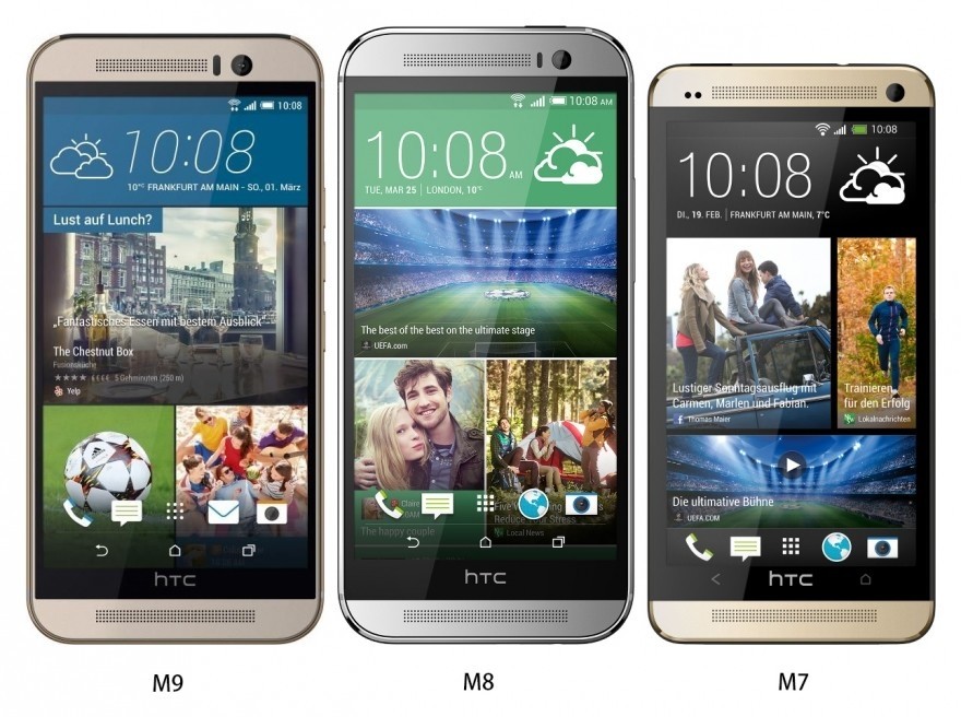 如果说M7是HTC痛定思痛的革新之作,那么M8就是锦上添花,虽然其机身设计基本延续了M7的全金属风格,但在细节上变化不少。屏幕由M7的4.7英寸增大至5英寸,按键从实体触摸变为虚拟按键,还加入了由408万像素UltraPixel主摄+200万像素副摄的双摄像头设计 。虽然整体在屏占比、机身重量方面,其相比同时代的机型并没有什么优势,但其仍凭借出色的颜值和简洁易用的系统受到不少消费者的追捧,该机也帮助HTC在2014年第二季度实现扭亏为盈。