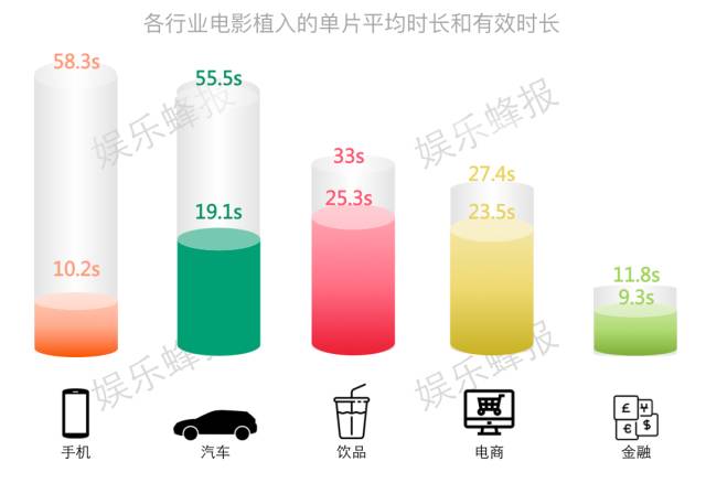 从平均每部影片中的植入镜头时长来看,手机品牌的时间最长,但由于外观高度相似等原因,能够有效识别的时间却很短。