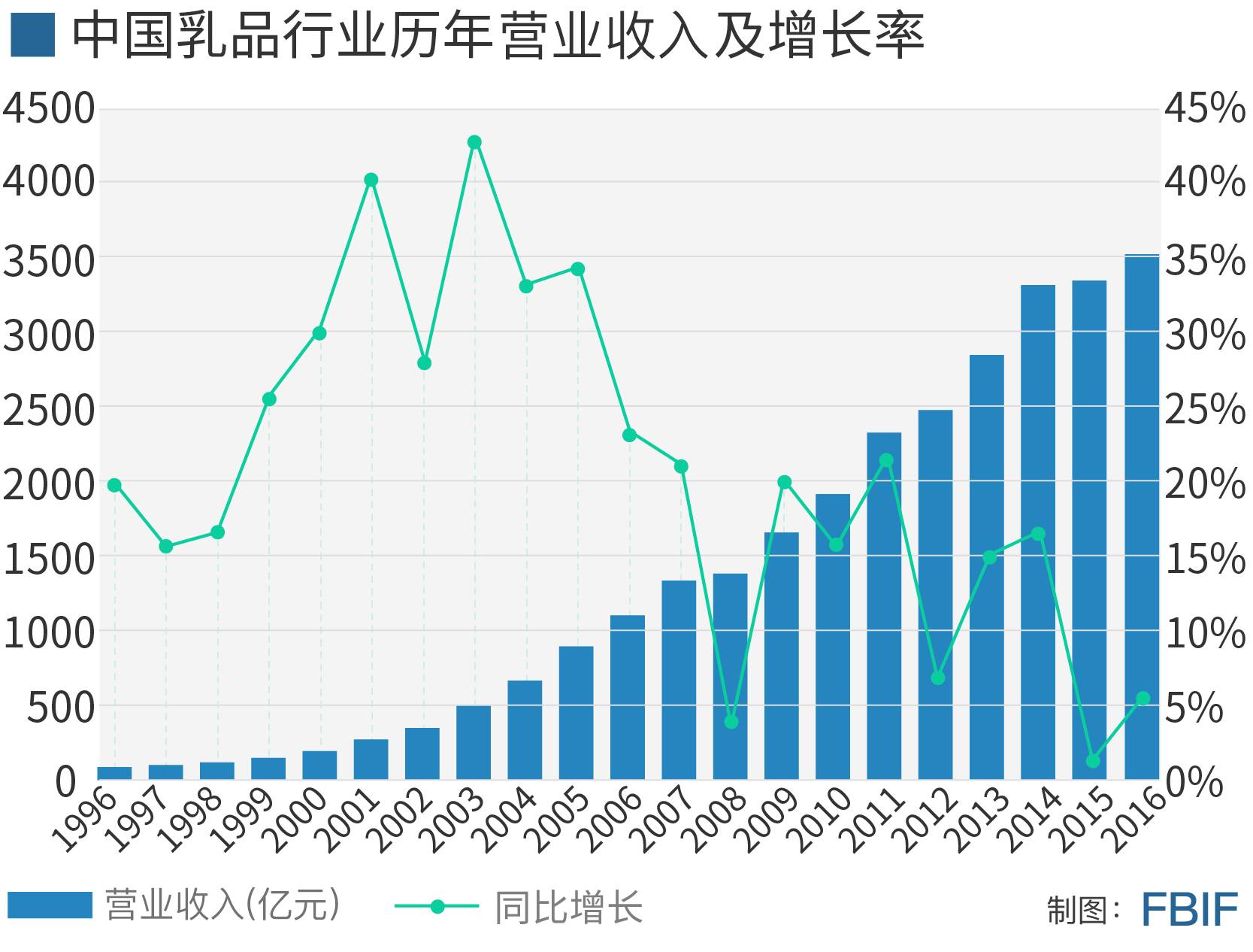 自2012年起,中国经济增速由之前超过10%,降到2012年的7.7%。随着整体经济进入较低位增长的阶段,乳品行业也在放缓,2012年至2016年期间的平均增长率仅为8.80%。