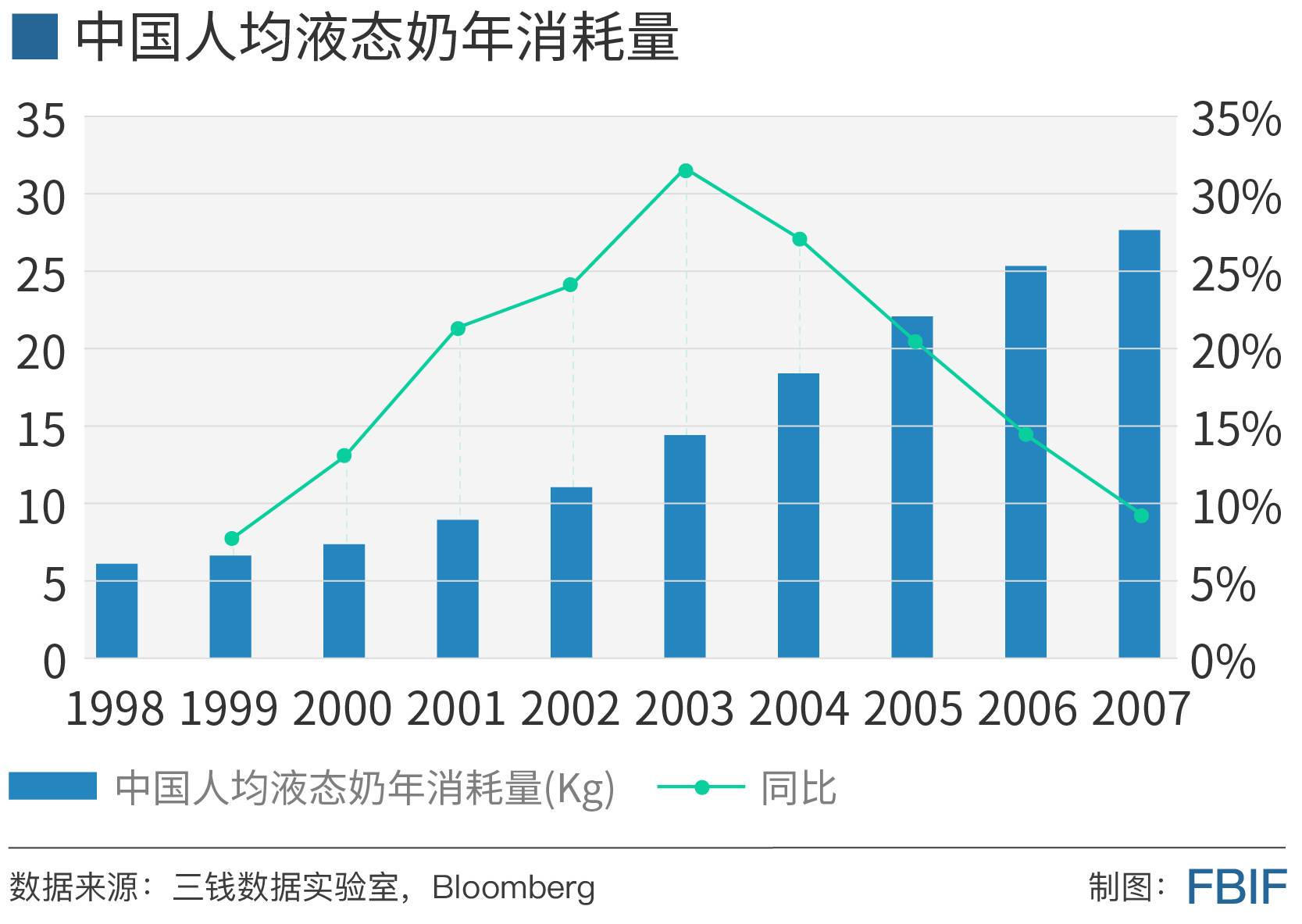 在90年代及以前,中国乳品企业大多以生产低温鲜奶为主。而采用低温杀菌技术,不易长期保存,因此,销售半径有限,企业难以扩大。利乐先后帮助伊利与蒙牛实现长时间储存牛奶,利乐包装的常温奶拥有便于携带、容易储存、亦适合长途运输、价格更低等优势,彼时,正迎合了中国人均液态奶消耗量的爆发式增长趋势 ,蒙牛与伊利开启了中国乳品行业最辉煌的增长年代。