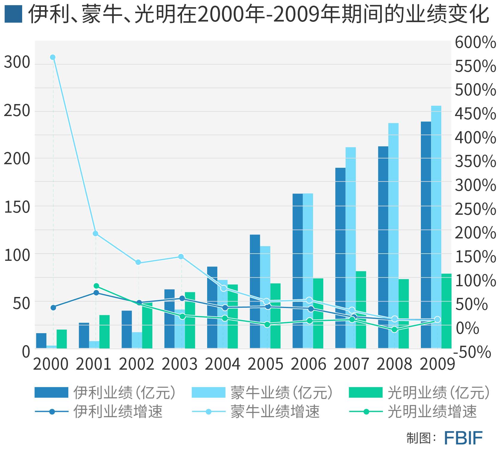 伊利的业绩在2000年至2009年期间平均增长率达到36.89%,蒙牛更是高达126.36%。在常温奶领域,基本上应验了二元法则,只有老大、老二,没有老三。