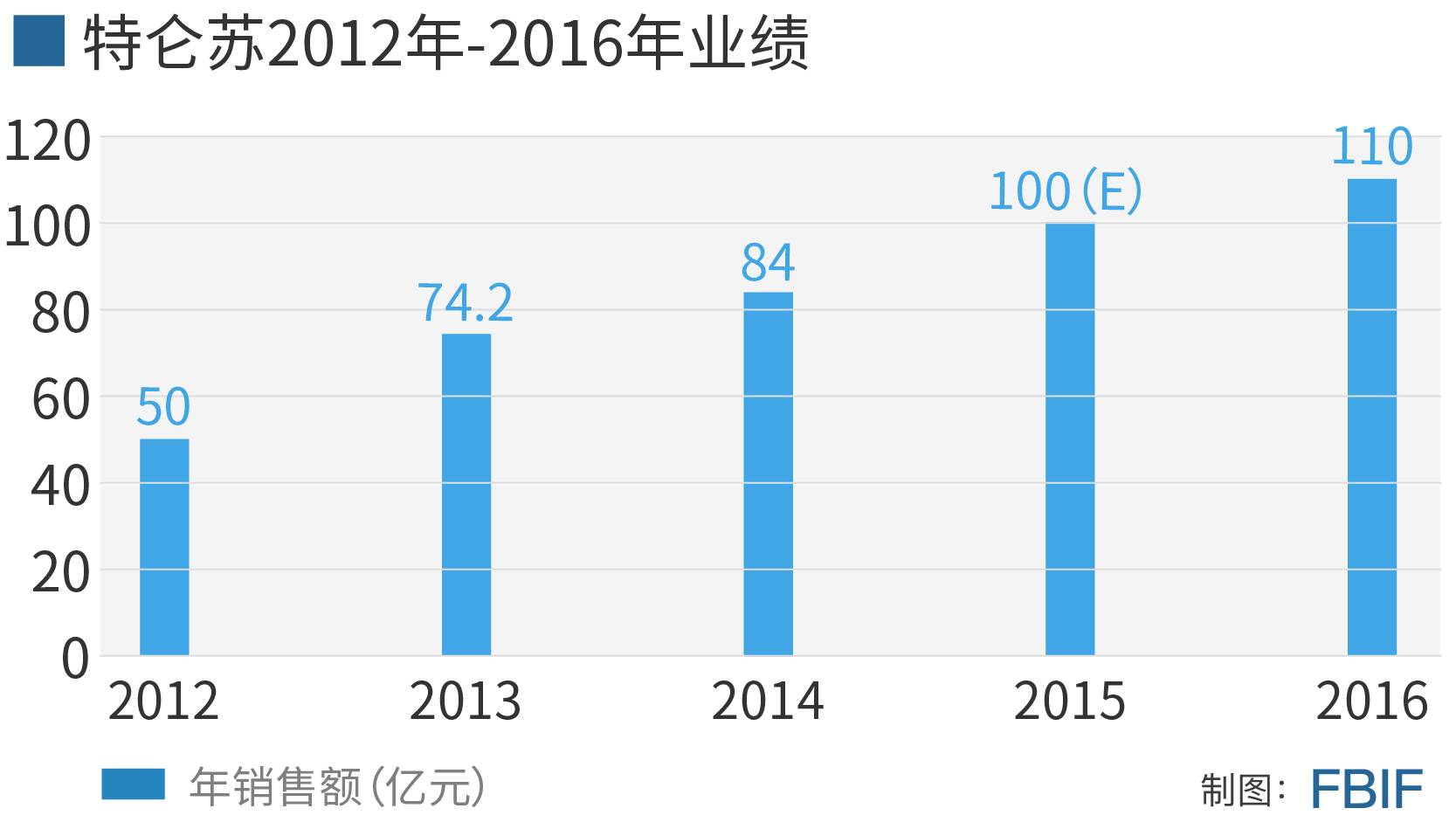 图9:特仑苏2012年-2016年业绩,其中2015年业绩为根据媒体报道预估