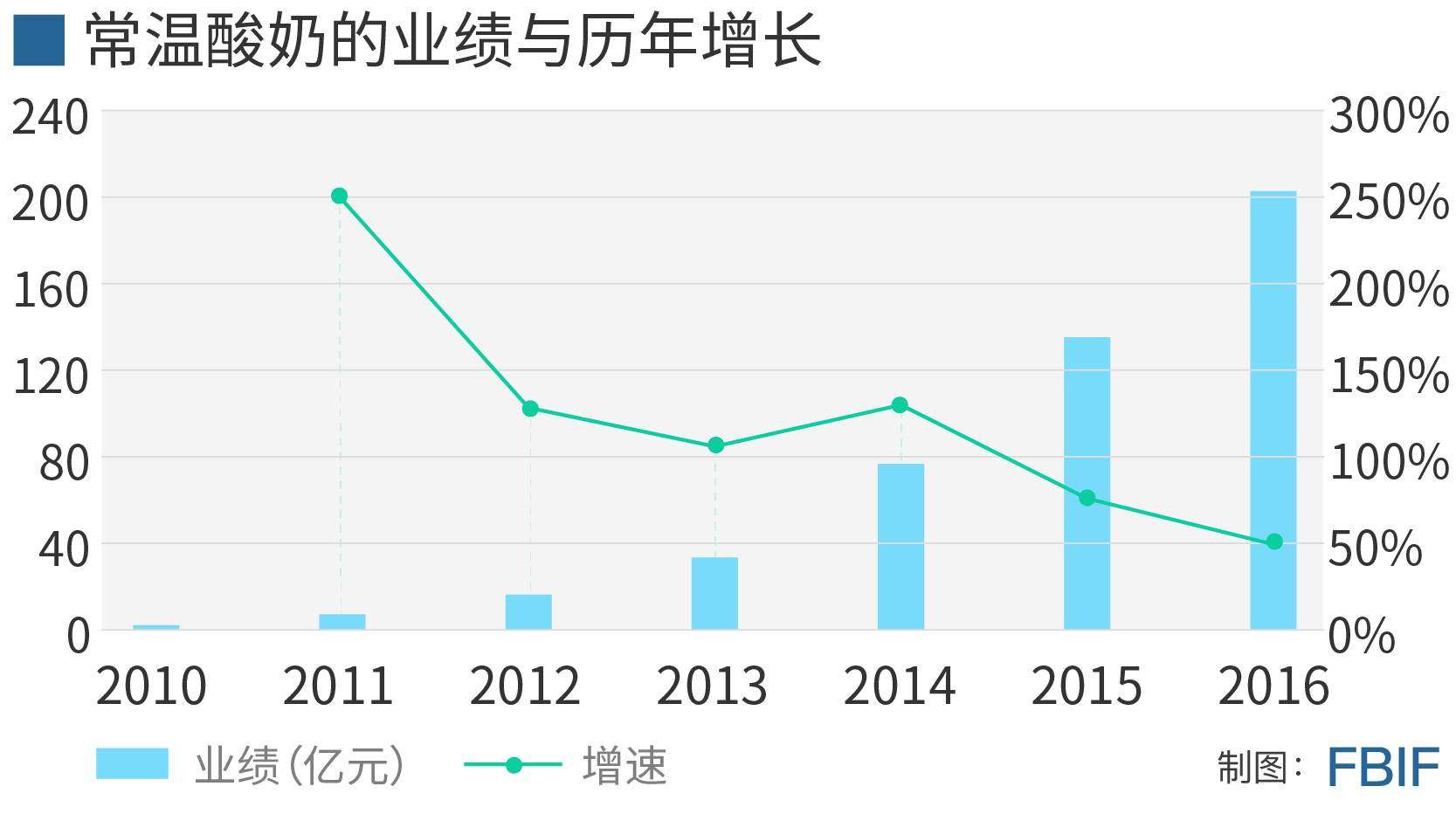 随着消费升级、冷链的发展,低温酸奶在中国持续增长,2011年-2016年期间增速稳定在10%以上。然而,在中国市场,当前最耀眼的明星是“常温酸奶”。