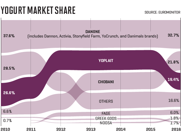 [29] Chobani surpasses Yoplait in sales and market share,Mar 13,2017,dairyreporter