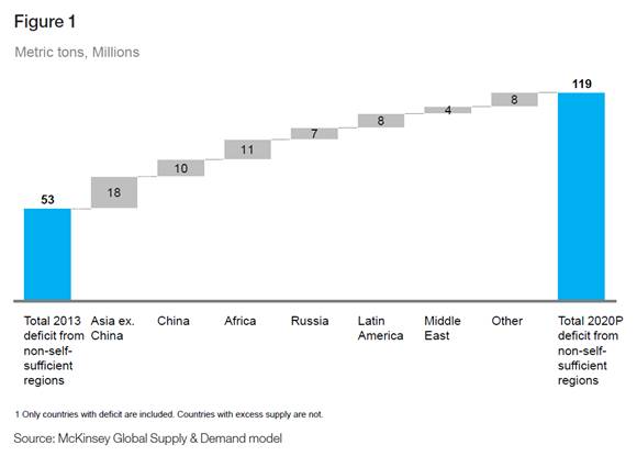 图24:麦肯锡于预测的全球各地的乳品市场缺口