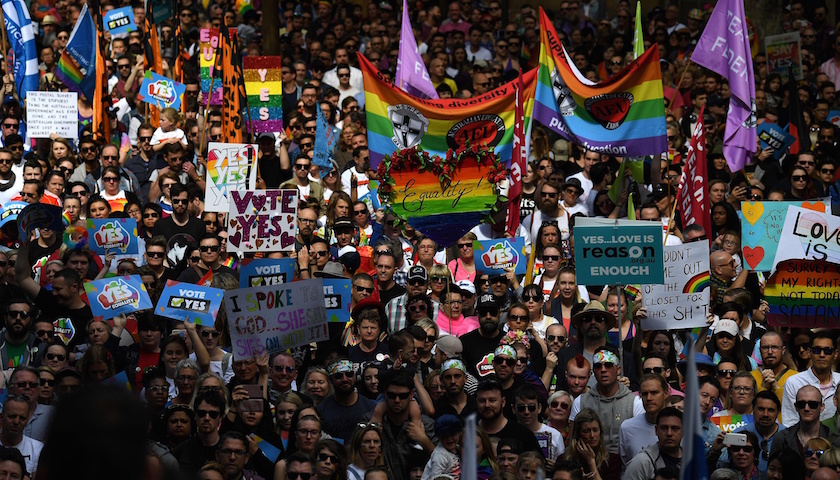 澳大利亚国内目前正在就是否让同性婚姻合法化进行激烈辩论。政府正在通过邮寄投票的方式举行一场公投,总理特恩布尔承诺,若绝大多数选民支持同性恋婚姻合法,那么议会将在圣诞节前就此事举行投票。