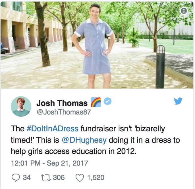 引发争议的是这场慈善筹款活动的形式:让员工和教职工身穿裙子或者随意着装。“穿一件裙子”(Do It In A Dress)是澳大利亚慈善组织OneGril六年前发起的一项为女童谋利的活动。克雷格本小学(Craigburn Primary School)校长说,当学生们得知非洲女孩无法享受教育时,他们就组织了这次“穿一件裙子”的筹款活动。