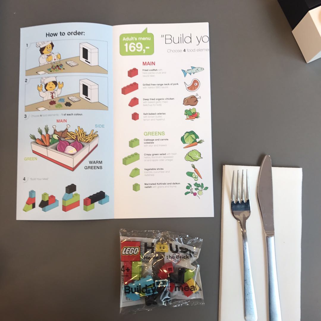 乐高自然也不会对此无动于衷。在LEGO House餐厅吃饭时,你无法跟“厨师”用人类语言交流,他们都是乐高机器人——你需要用乐高积木来点单,每一种颜色和类型的积木代表了一种菜品。然后还是通过扫描的方式,向厨师发出指令。