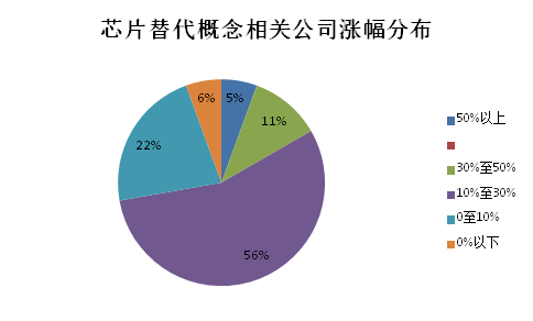Wind资讯数据显示,9月以来芯片替代概念的38只个股中36只涨幅为正,其中,涨幅50%以上有2只,涨幅介于30%至50%的有4只,介于10%至30%的有20只,涨幅0至10%的有8只。