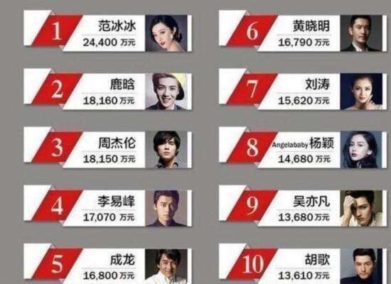 据《2017年中国名人收入榜》显示,10个人一年赚了17亿,上榜的100位名人中,仅有林丹、朗朗两人不属于影视歌行业。