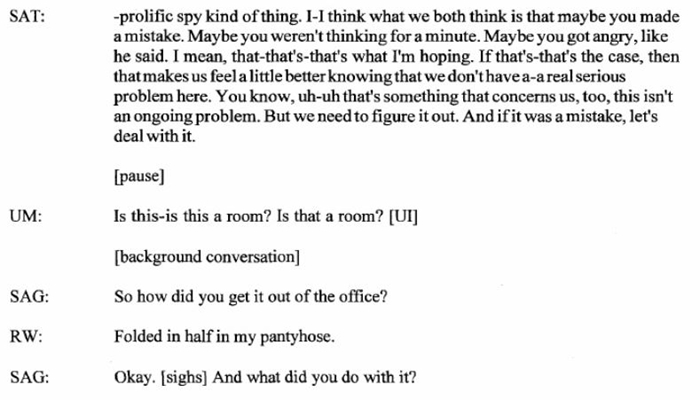 最终在探员的反复询问中,温纳承认自己将机密报告“对折,藏进了连裤袜中”。