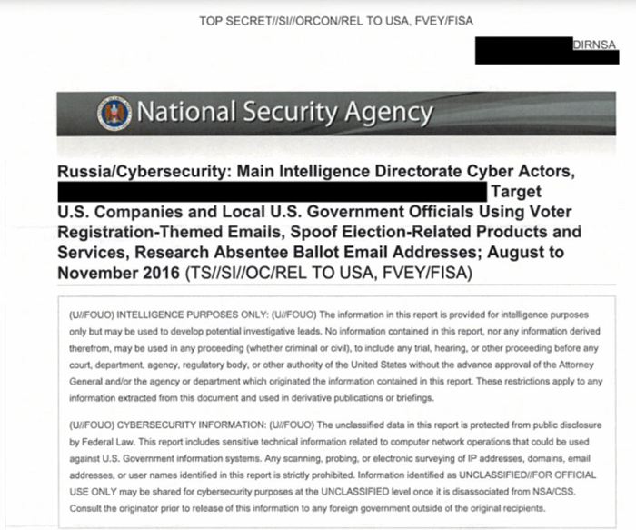 6月5日,美国解密新闻网站The Intercept发布了一篇报道,报道引用匿名人士的爆料,指出在2016年美国大选开始之前,俄罗斯军事情报机构对美国的投票软件供应商发动了黑客攻击,并将钓鱼软件发送给100多名投票站官员。