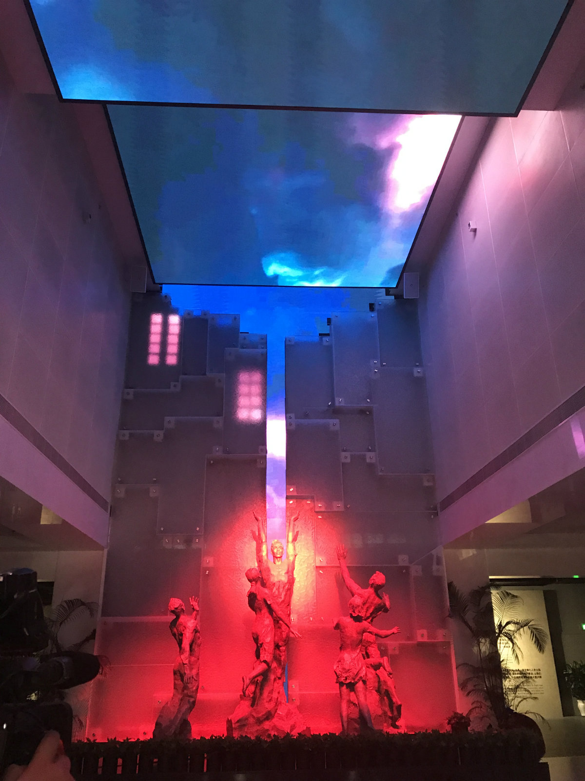 二十四烈士雕塑多媒体剧场是整个展览最令人印象深刻的部分。据上海广涌多媒体技术有限公司总经理赵云峰介绍,剧场使用全息技术投射出真人大小的影像,以现代舞的形式演绎了龙华二十四烈士的英雄事迹。剧场采用了目前国际上最先进的硬件技术和国内拥有最丰富经验的全息制作团队。剧场全息影像的宽度近10米,采用高分辨率LED成像和反射膜、DTS杜比环绕立体声,打造出目前国内体量和质量上都首屈一指的全息舞台。