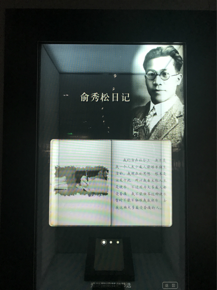 《英雄壮歌》在文物展示上也运用了高科技手段,例如俞秀松日记。1920年6月至7月,共产党创建时期的重要人物俞秀松在日记中详细记录了他在上海深入工厂,向工人宣传马列主义的情况,他特别提到了当时陈望道翻译完《共产党宣言》后是由他送到陈独秀寓所的。展览主创团队选用了带有视频播放功能的恒温恒湿柜,不仅对日记本身进行了全面展示,还将上述重要情节以视频的方式进行展播。观众点击玻璃屏幕,即可“翻阅”俞秀松日记。