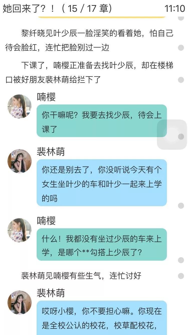 对话体小说,是一种省略了传统网文的场景描写和背景交代,主要用人物对话来推进剧情发展的网文,在APP内的呈现方式类似于QQ或者微信聊天界面,大部分APP有人物头像,中间还可以插入图片或者表情包。